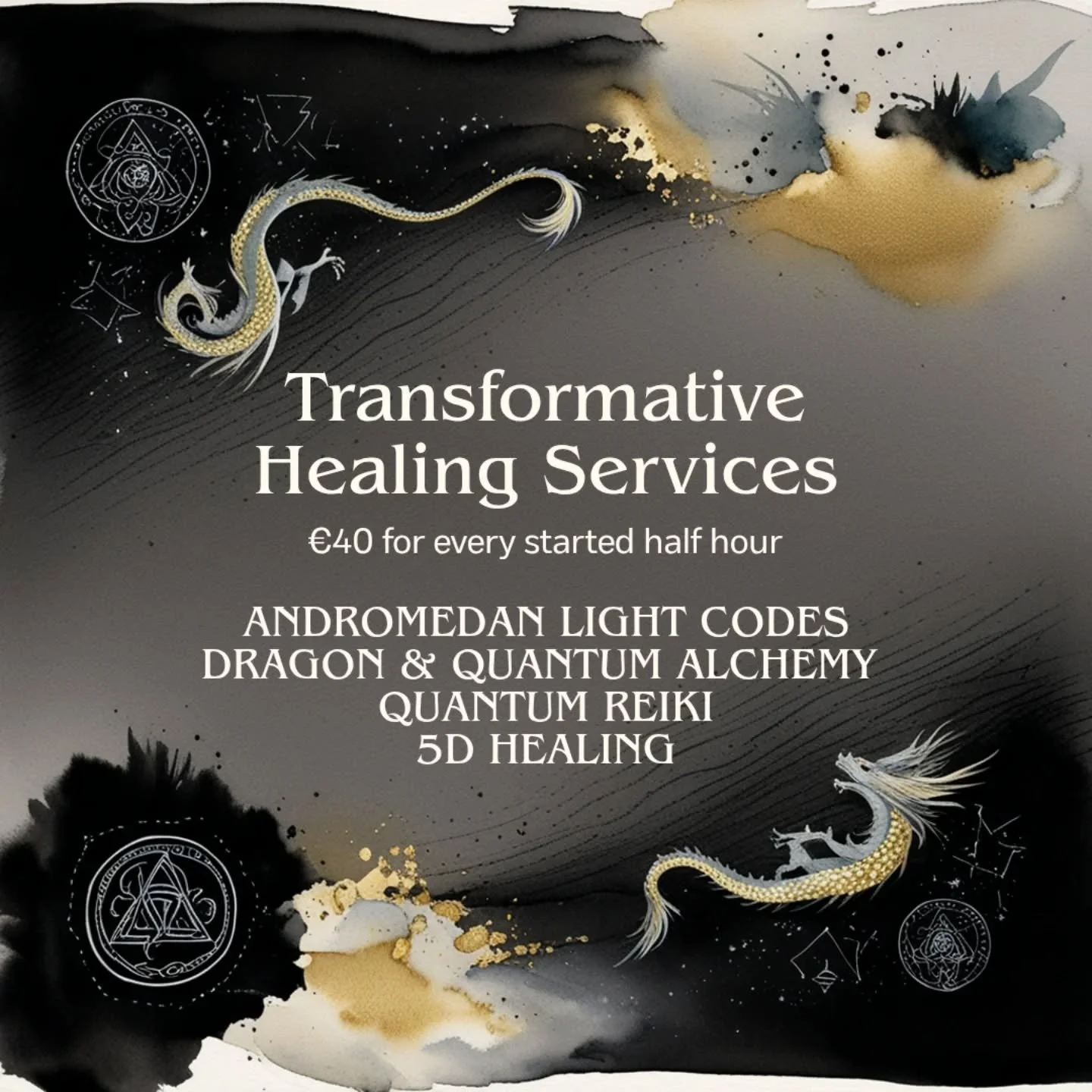 I channel a blend of Dragon Alchemy and Andromedan Light Codes — powerful, high-frequency energies that clear heaviness, activate clarity, and support deep transformation. This combination helps clients shift quickly into a lighter, more aligned state, creating a strong foundation for healing and personal expansion.