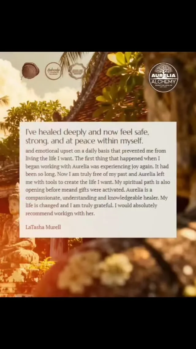 and emotional upset on a daily basis that prevented me from living the life I want. The first thing that happened when I began working with Aurelia was experiencing joy again. It had been so long. Now I am truly free of my past and Aurelia left me with tools to create the life I want. My spiritual path is also opening before meand gifts were activated. Aurelia is a compassionate, understanding and knowledgeable healer. My life is changed and I am truly grateful. I would absolutely recommend workign with her.